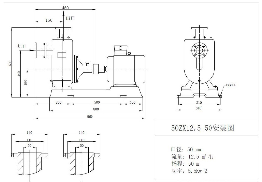 50ZX12.5-50自吸泵安裝尺�