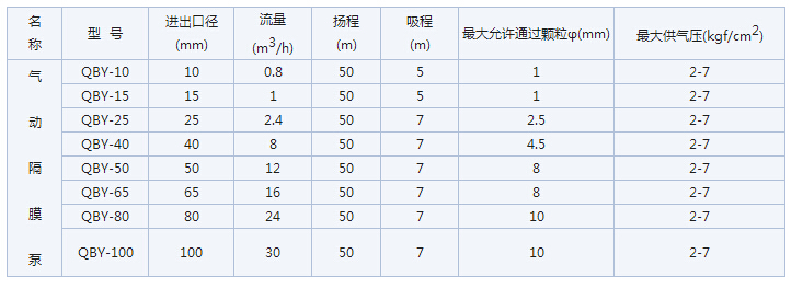 QBY不銹鋼氣動隔膜泵性能參數(shù)�